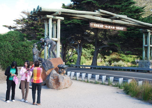 The Great Ocean Road Memorial Arch is located at Eastern View, just after Aireys Inlet on the Great Ocean Road and approx 34km from Torquay. A little known fact about the Great Ocean Road is that it was constructed as a war memorial for soldiers who lost their lives in the First World War. A number of monuments line the Great Ocean Road, which is recognised as the worlds largest war memorial and it was added to the Australian National Heritage List in 2011.
